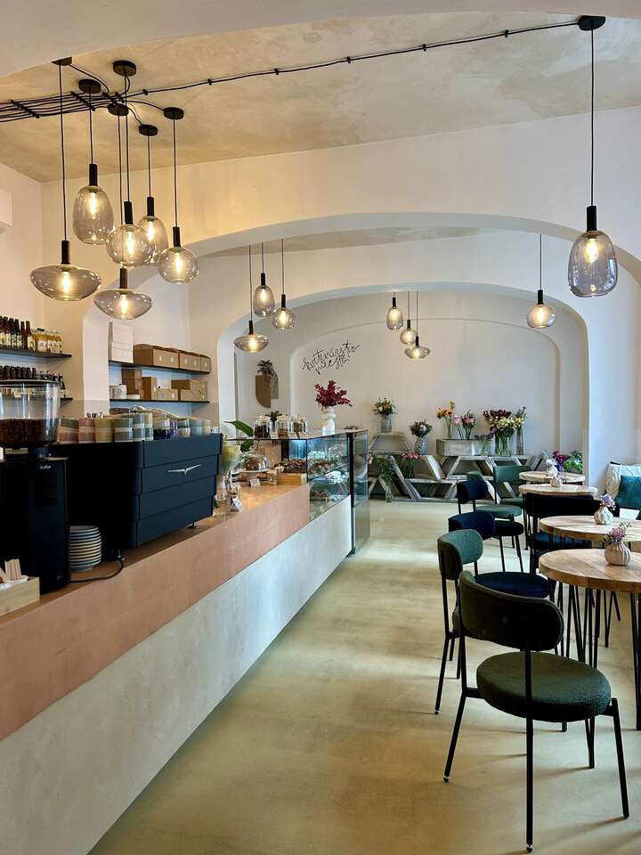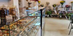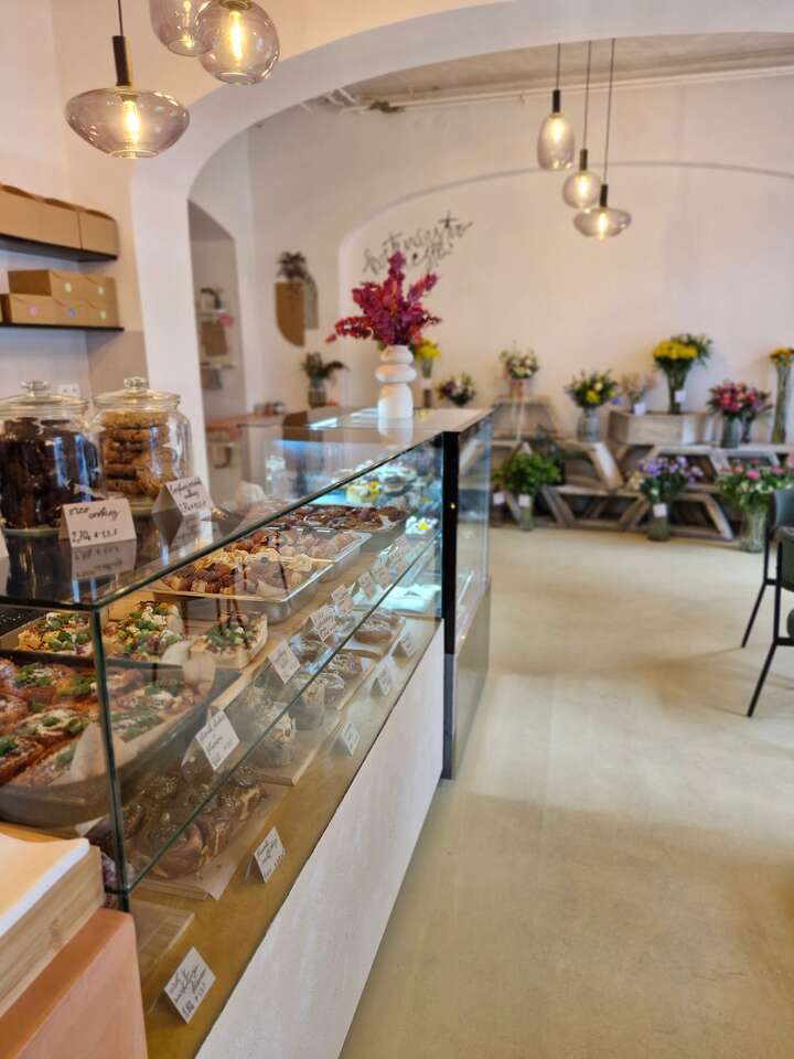 Pekáreň s výberovou kávou a kvetinárstvom.Miesto - rozkvitnutá pekáreň