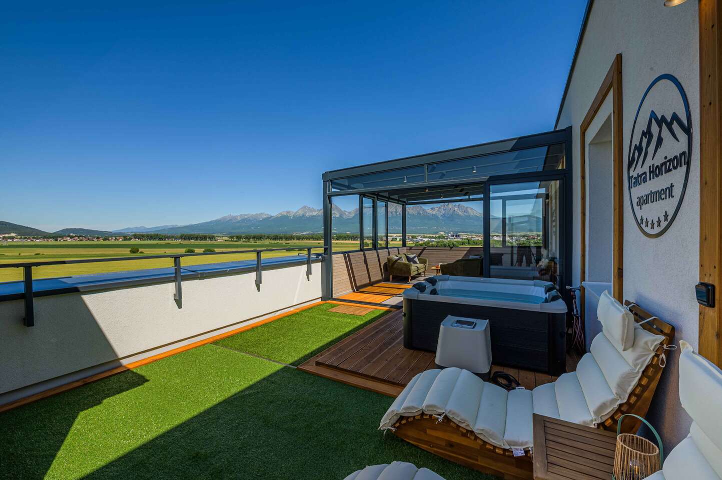Tatra Horizon Apartment je moderné a priestranné ubytovanie v Poprade, ktoré vyniká súkromným wellness s vírivkou a fínskou saunou na veľkej terase, ponúka nádherný panoramatický výhľad na Tatry a poskytuje maximálny komfort vo všetkých smeroch.
