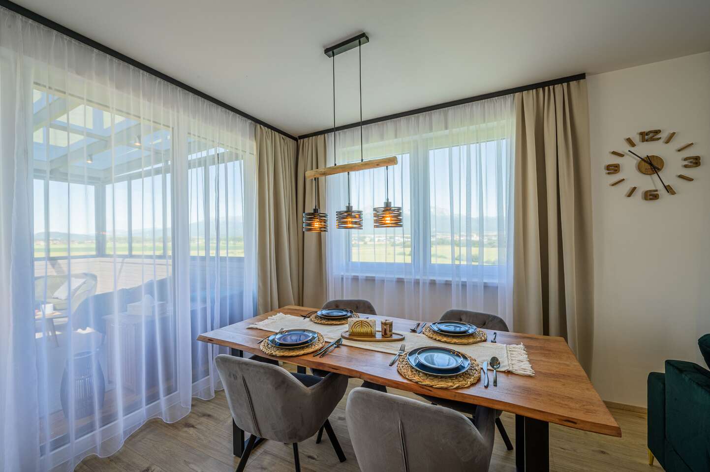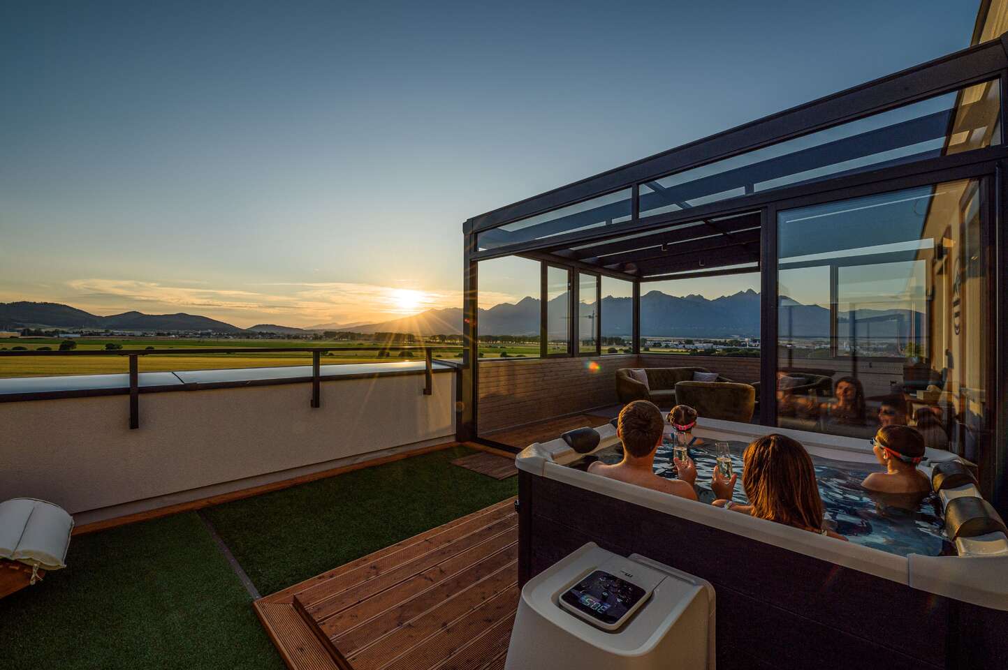 Tatra Horizon Apartment je ideálnym miestom na dokonalý únik do Tatier. Moderný interiér a vysoký komfort dopĺňajú dve terasy, z ktorých jedna je krytá, takže vytvára príjemné zázemie na oddych v každom počasí. Na jednej z terás si dokonca užijete súkromnú vírivku, fínsku saunu aj relax na ležadlách pri pohári vína, pričom pred vami sa rozprestiera úchvatná panoráma Vysokých Tatier.