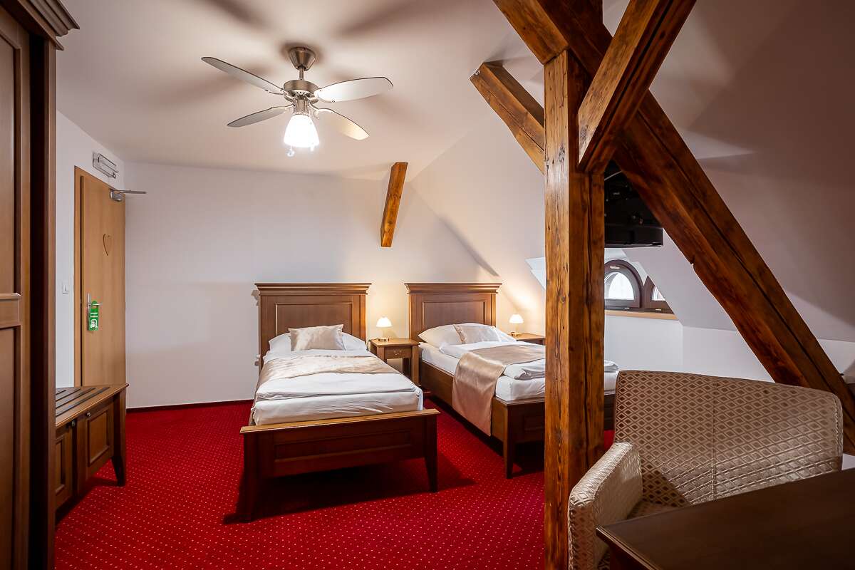 Smolenický zámok v sebe ukrýva aj 28 štandardných 2-, 3- a 4-lôžkových izieb. Aj tie dýchajú históriou s krásnym zariadením a každá z nich je iná! Nájdete ich v rôznych častiach zámku - v hlavnej budove, v podkroví zámku, v baštách, pri vstupe do zámku. Každá štandardná izba má vlastnú kúpeľňu, toaletu, písací stolík, skriňu, TV. Niektoré majú vaňu, iné sprchový kút, samostatné WC, prípadne spojené WC s kúpeľnou.